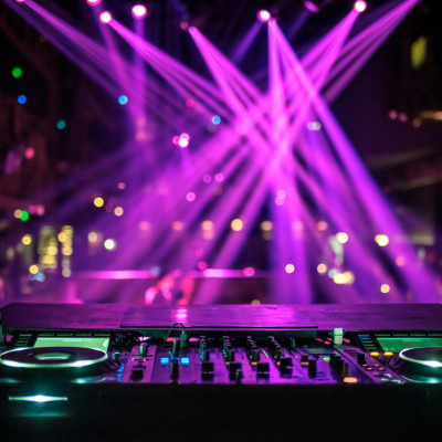 DJ sound system, live music, dance floor & lighting